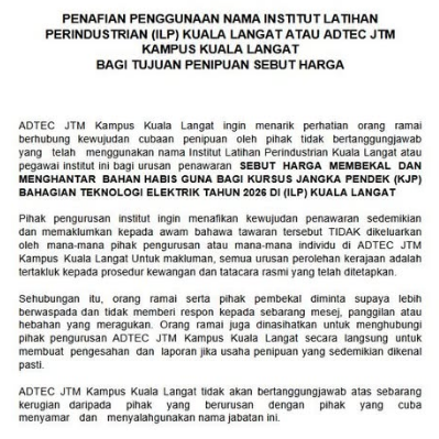 12 Februari 2026 | Alhamdulillah dan setinggi-tinggi tahniah diucapkan kepada Team ADTEC JTM Kampus Kuala Langat atas pencapaian cemerlang dalam pertandingan CITEC 2026. Kejayaan ini membuktikan komit...
